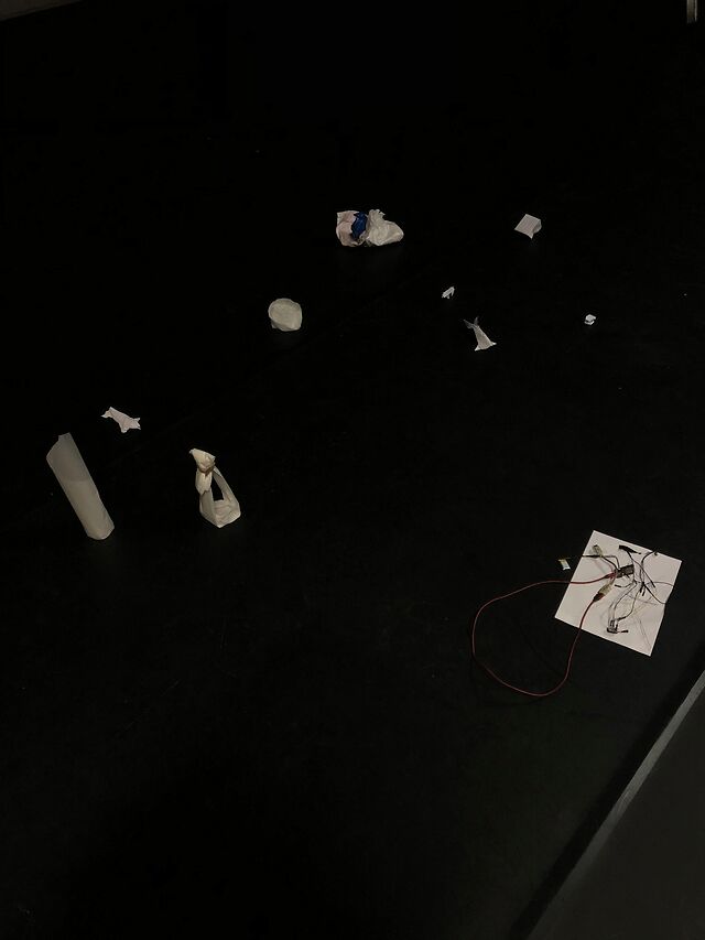 "For this residency I would like to imagine and develop objects/bodies on stages that blurs the boundaries: ghostly bodies: the state of being unsettled but present/confident at the same time, empowerment by turning the situation around and striving to be comfortably unsettled. As a starting point I would like to research how objects can have their own life and move autonomously on the stage. I will develop the motion of floating objects and drifting objects. To find a body to be post subjective, a solo as an ensemble." - Hanako Hayakawa